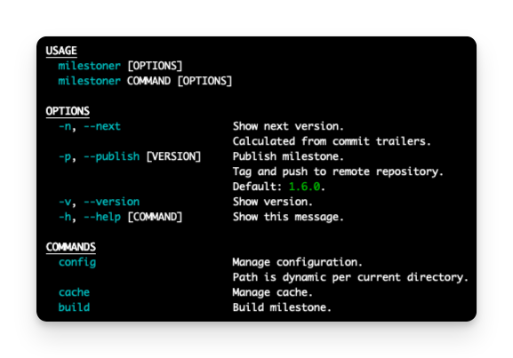 Milestoner is a pure Git based Command Line Interface (CLI) for software deployment automation that is agnostic of the programming language or source control service you use (i.e. GitHub, GitLab, Bitbucket, etc). Each milestone (i.e. Git tag) includes automatic generation of feature rich release notes sourced from the Git commits that make up the tag. Finally, each milestone adheres to Strict Semantic Versioning so your milestones remain consistent.