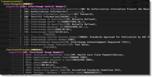 For those unfamiliar with ASC X12 EDI, it is a data format used to encode common business documents like purchase orders, delivery notices, and health care claims. It is similar to XML in some ways, but precedes it by about 15 years; so if you think XML sucks, you will love to hate EDI.