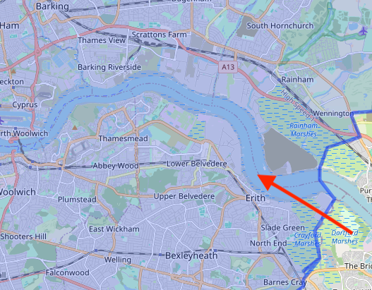 For example, coordinates that fall within the river Thames, where Greater London is on both sides of the river, will return 'Greater London' as the ceremonial county.